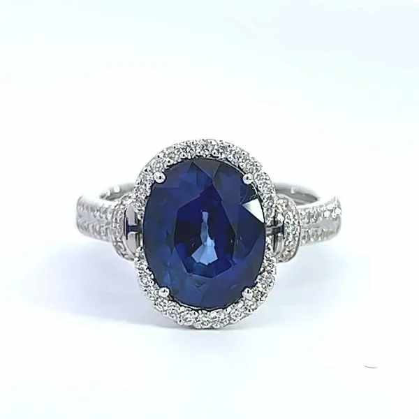 (708) 716-362618k White Gold Sapphire and Diamond Halo Ring