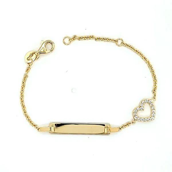 (708) 716-362614 Karat Yellow Gold Baby ID Bracelet With CZ Heart
