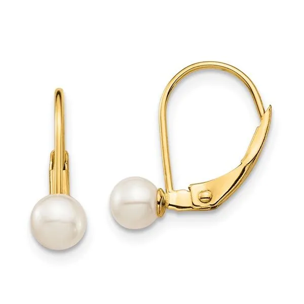 (708) 716-362614K 4-5mm White Round Freshwater Pearl Leverback Earrings
