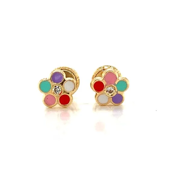 (708) 716-362614k Yellow Gold Enamel Flower Earrings