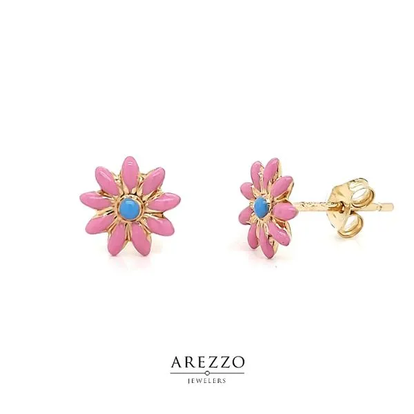 (708) 716-362614k Yellow Gold Light Pink Flower Enamel Earrings