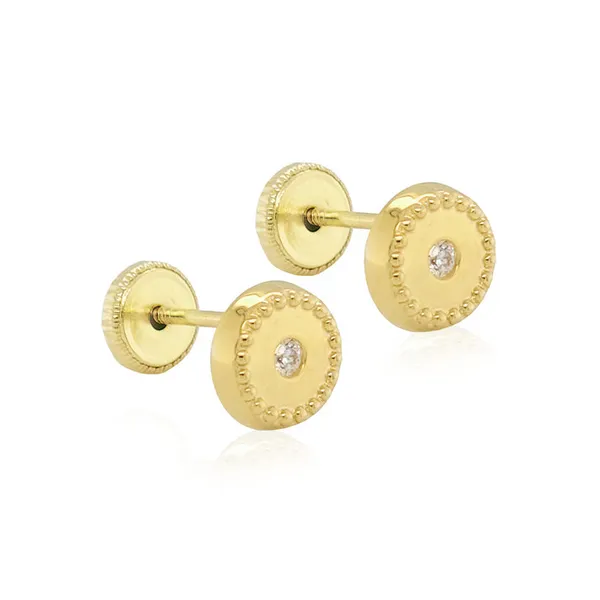 (708) 716-362614K Yellow Gold Stud Children's Petite Beaded Circle CZ Stud Earrings