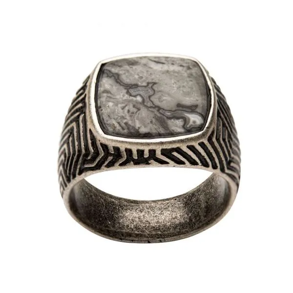 (708) 716-3626Stainless Steel Silver Plated with Gray Jasper Stone Ring