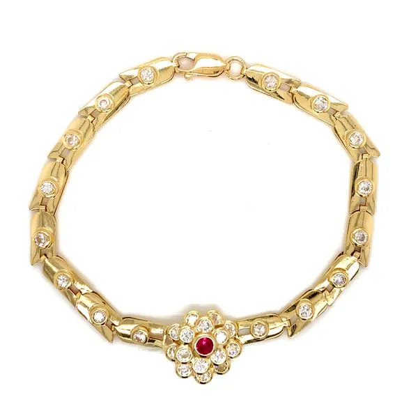 (708) 716-362614k Yellow Gold CZ Flower Bracelet