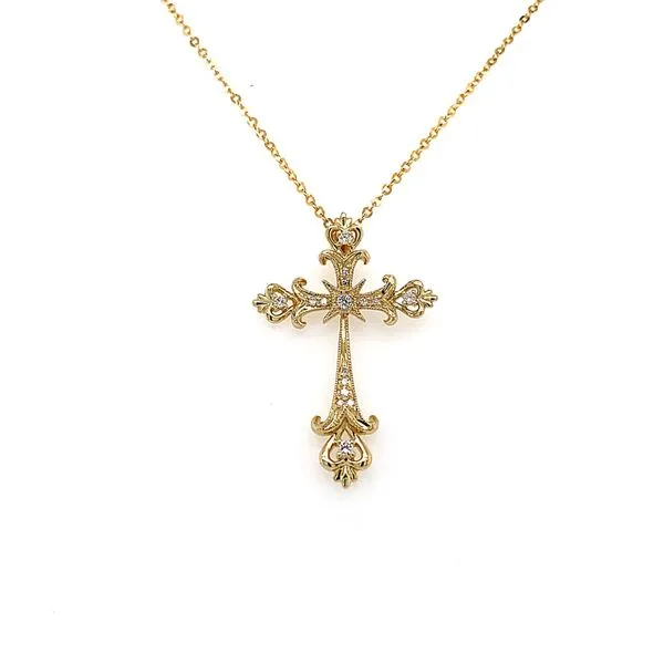 (708) 716-3626Yellow Gold Diamond Filigree Cross - .11cts