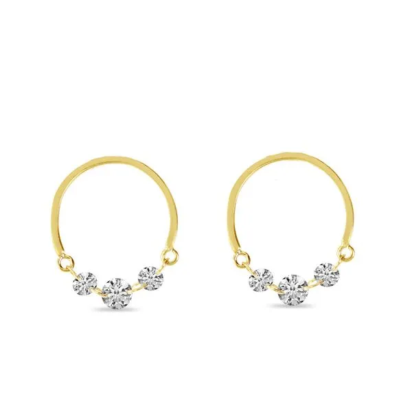 (708) 716-362614K Yellow Gold Dashing Diamond Half Circle Front Hoop Earrings