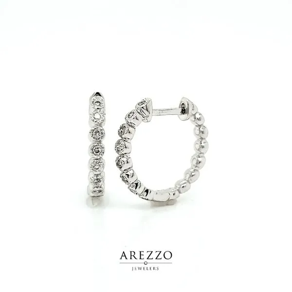 (708) 716-362614k White Gold 15mm Diamond Hoop Earrings