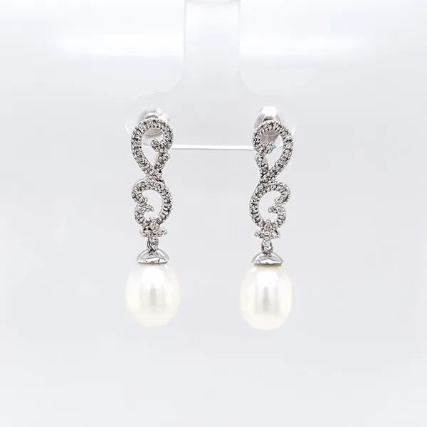 (708) 716-362614k White Gold Diamond and Pearl Drop Earrings