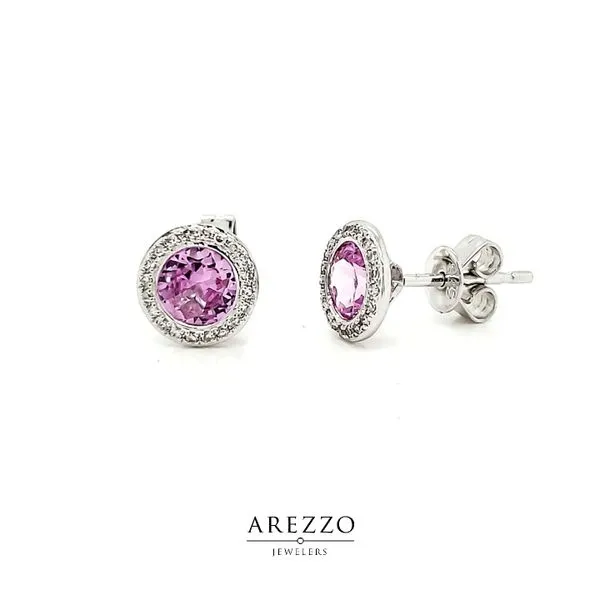 (708) 716-362614k White Gold Diamond Halo Martini Earrings with Pink Corundum