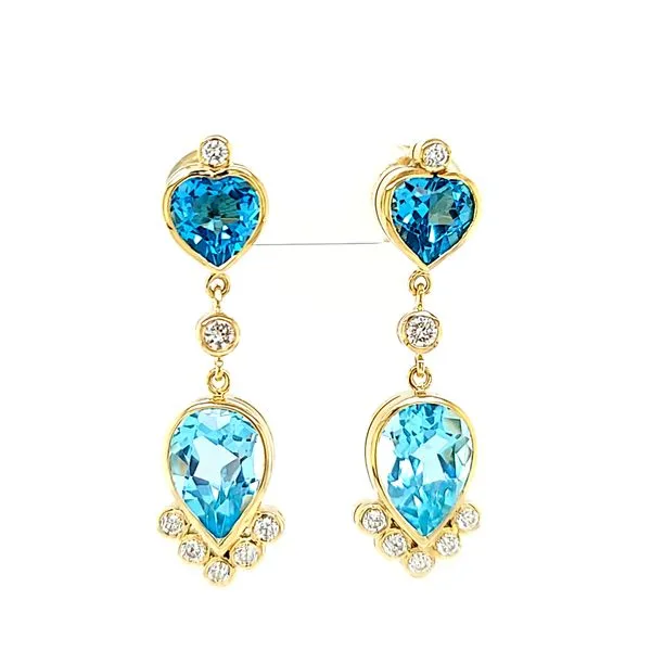 (708) 716-362614k Yellow Gold Blue Topaz and Diamond Dangle Earrings