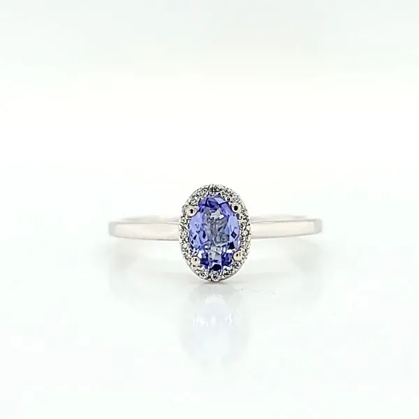 (708) 716-3626Diamond Halo Solitaire Ring with Oval Tanzanite in 14k White Gold