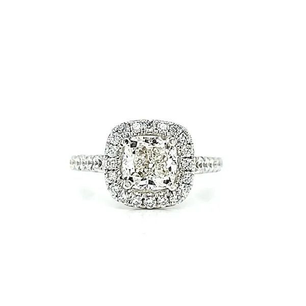 (708) 716-3626Cushion Cut Diamond Halo Engagement Ring, 1.50ct H SI1