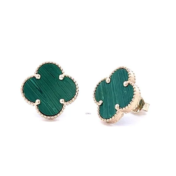 (708) 716-362614k Yellow Gold Designer Green Malachite Stud Earrings