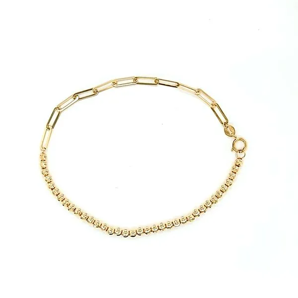 (708) 716-362614k Yellow Gold Moon Cut Bead and Paperclip Bracelet