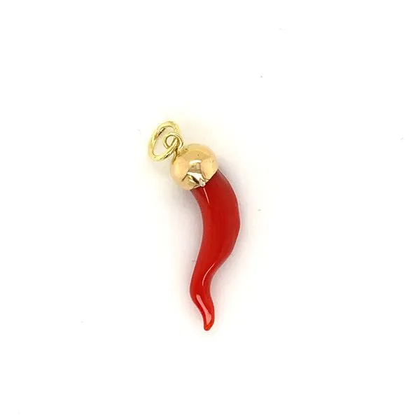 (708) 716-3626Coral Italian Horn Charm with 18k Yellow Gold