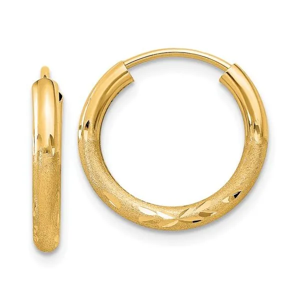 (708) 716-362614k Yellow Gold 2mm Satin Diamond-cut Endless Hoop Earrings