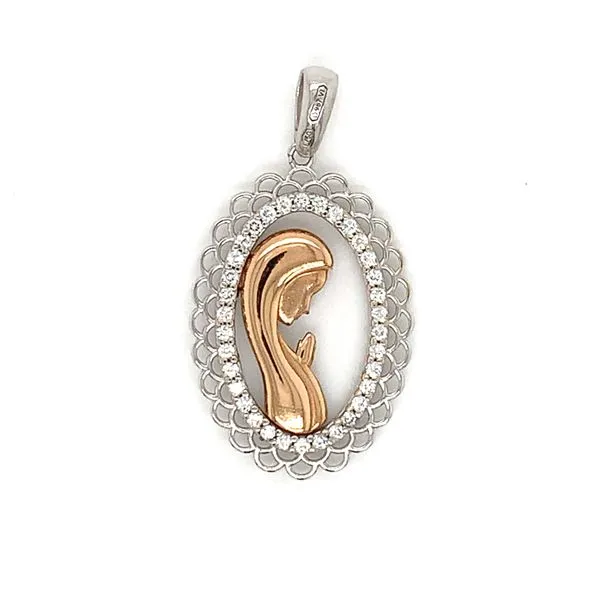 (708) 716-362618K Rosé and White Gold Praying Mary Medal with CZ's