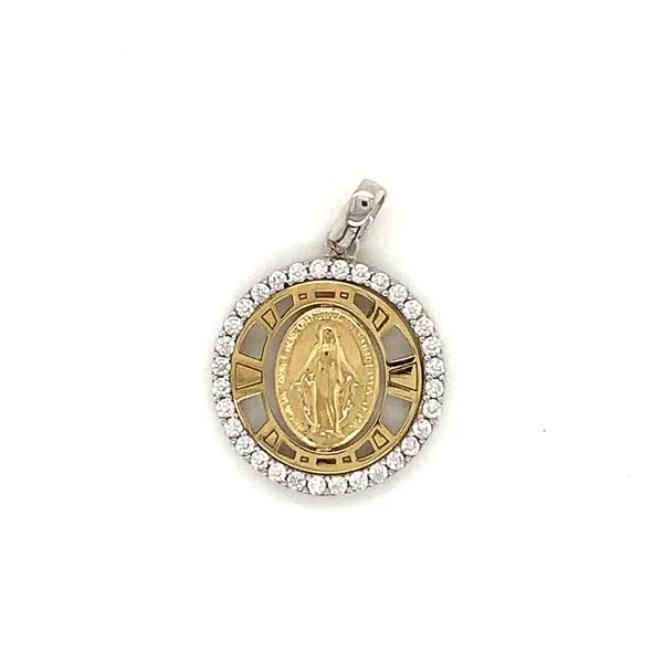 (708) 716-362618k Two Tone Gold Miraculous Mary Medal with CZ