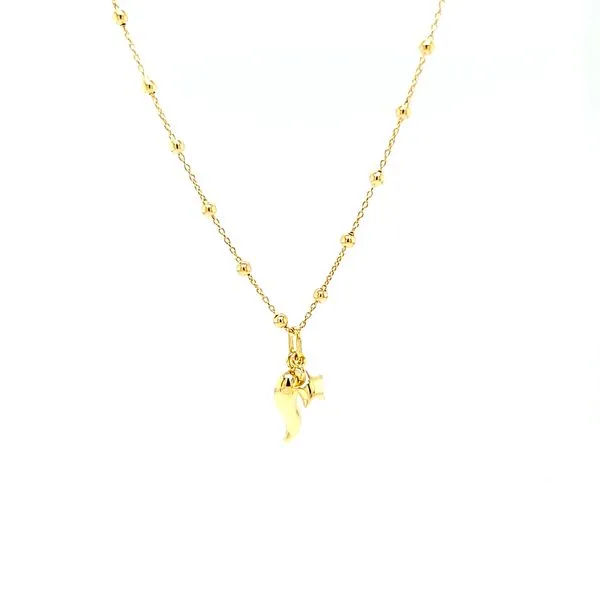 (708) 716-362618k Yellow Gold Italian Horn & Little Star Dangle Necklace.