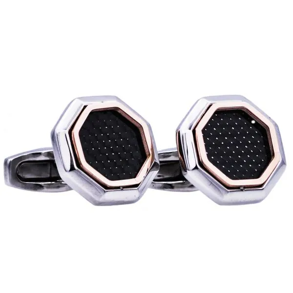 (708) 716-3626Rose Gold Plated Steel Cuff Links With Black Carbon Fiber