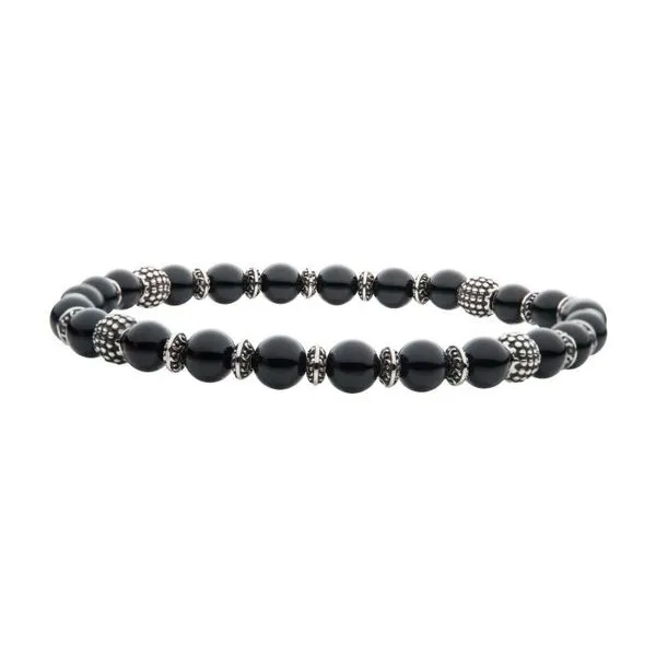 (708) 716-3626Black Agate Stones with Black Oxidized Beads Bracelet