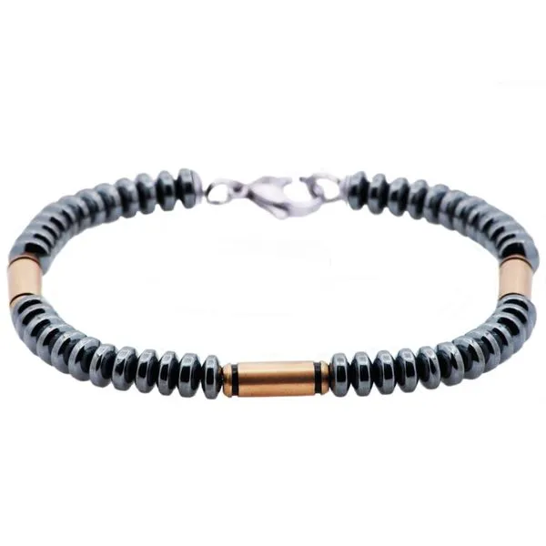 (708) 716-3626Gunmetal And Rose Plated Stainless Steel Disk Link Chain Bracelet