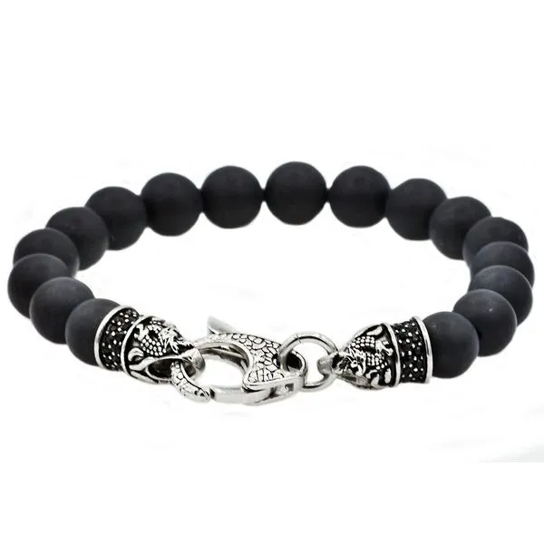 (708) 716-3626Onyx Bead Stainless Steel Bracelet with Black CZ's