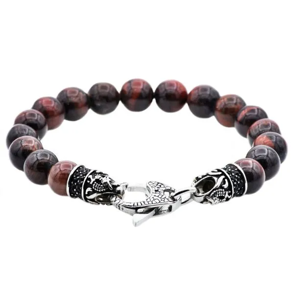 (708) 716-3626Red Tiger Eye with Black CZ Stainless Steel Bracelet