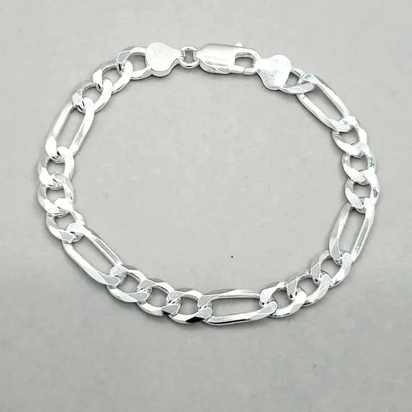 (708) 716-3626Silver 7.5mm Reversible Figaro Link Bracelet