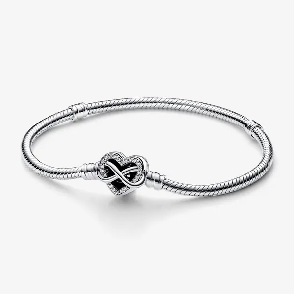 (708) 716-3626Pandora Moments Sparkling Infinity Heart Clasp Snake Chain Bracelet - Size 20