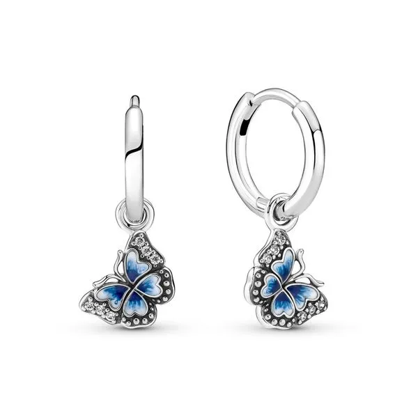 (708) 716-3626Pandora Butterfly Silver Hoop Dangle Earrings