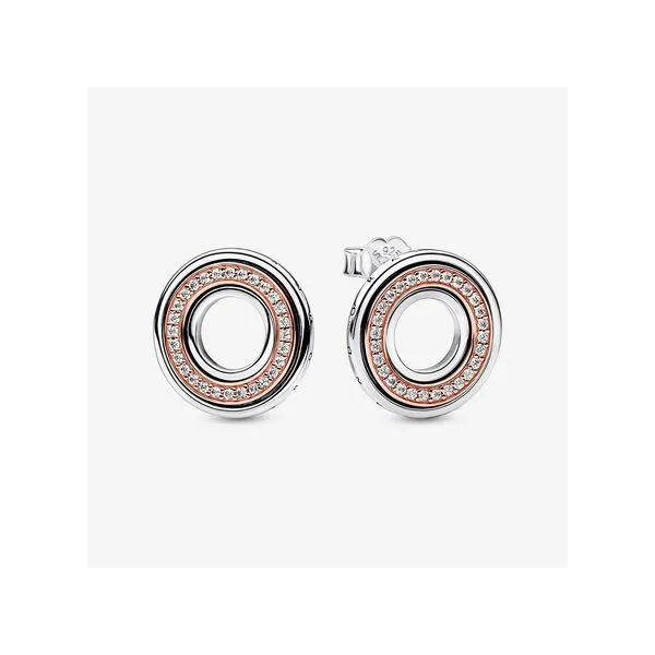 (708) 716-3626Pandora Signature Two tone Logo & Pave Stud Earrings