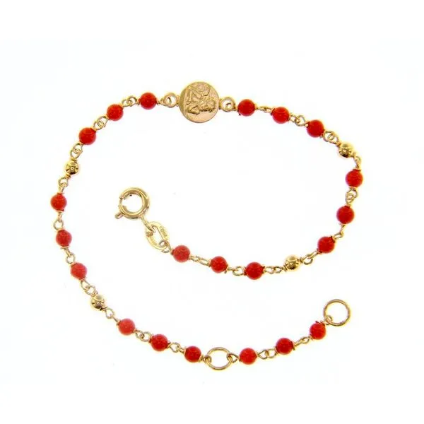 (708) 716-362618k Yellow Gold Beaded Coral Gaurdian Angel Bracelet
