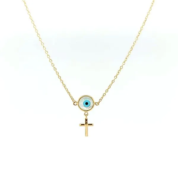 (708) 716-362614k Yellow Gold Evil Eye Cross Necklace