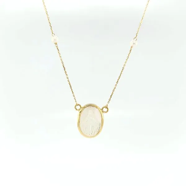 (708) 716-362614k Yellow Gold Mother Of Pearl Our Lady of Guadalupe Necklace