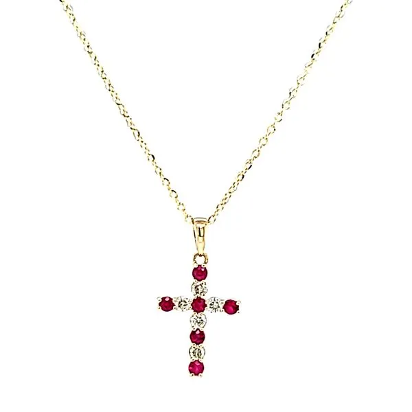 (708) 716-362614k Yellow Gold Ruby and Diamond Cross