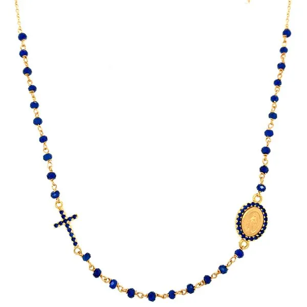 (708) 716-362618k Yellow Gold Rosary Necklace with Blue Sapphire Stones