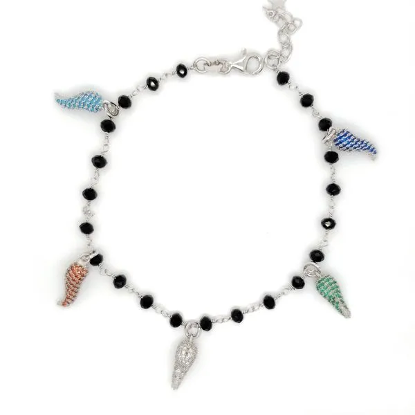 (708) 716-3626Silver Multi Color CZ Italian Horn Beaded Bracelet