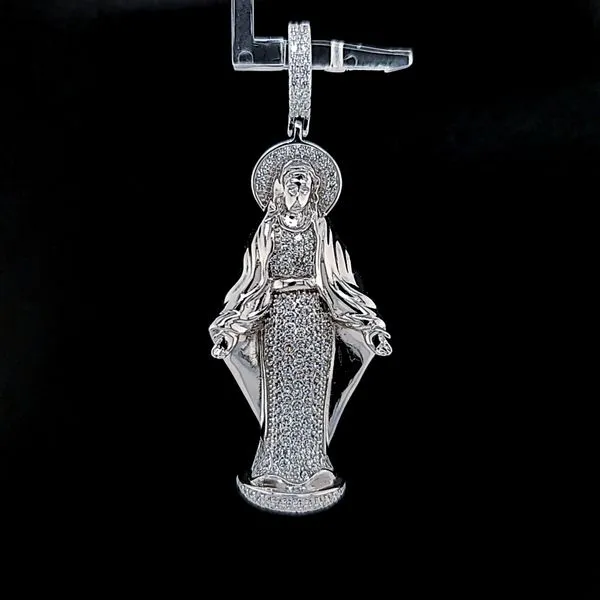 (708) 716-3626925 Silver Jesus Sculpted Figure and Micropave CZ Pendant