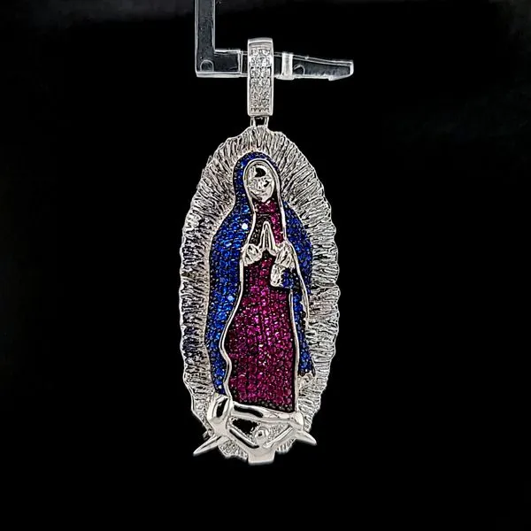 (708) 716-3626Silver Micropave CZ Our Lady of Guadalupe Pendant