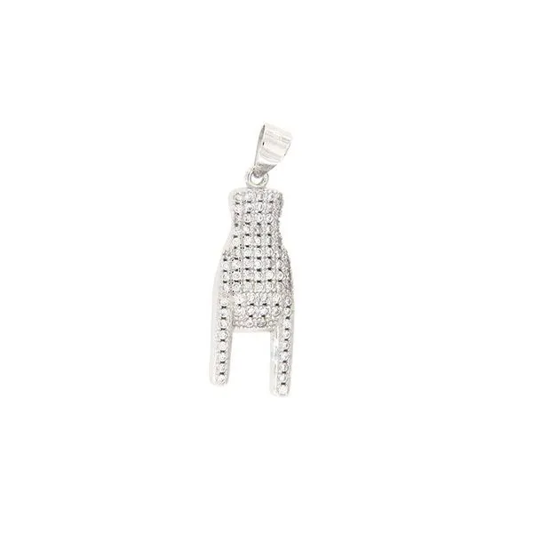 (708) 716-3626Platinum Plated Sterling Silver Italian Hand Charm with Cubic Zirconia