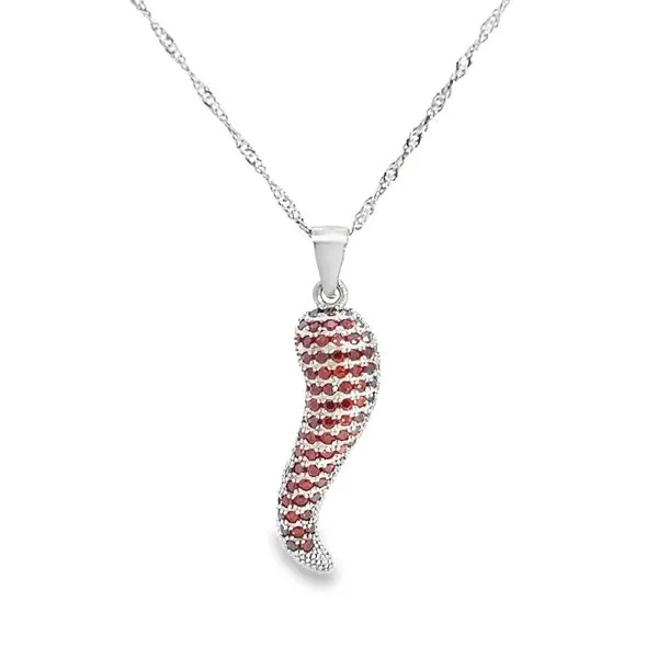 (708) 716-3626Sterling Silver Red Pave Italian Horn Charm with Cubic Zirconia