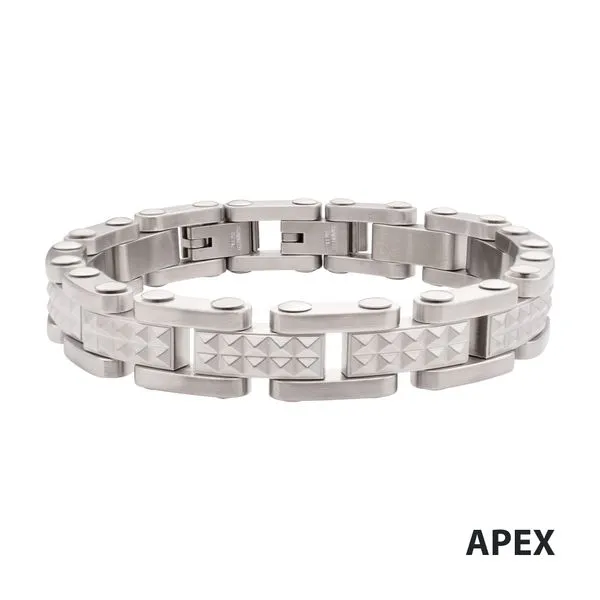 (708) 716-3626Stainless Steel Matte Finish Pyramid Stud Pattern Link Bracelet