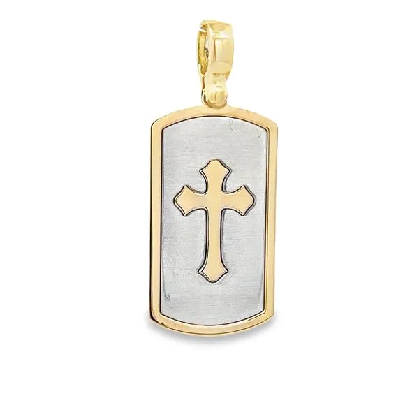 (708) 716-362618k Two Tone Gold Dog Tag with Cross