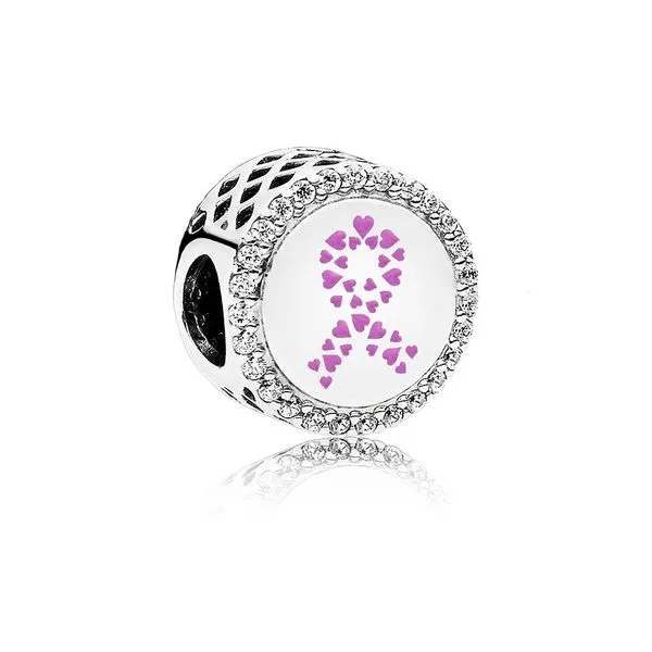 (708) 716-3626Ribbon of Strength Charm, Pink Enamel and Clear CZ